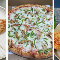 Medium cheese piece, chicken parm hero, large garden salad, 8 garlic knots, 2 liter soda.